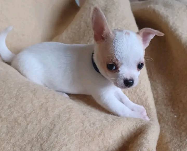 🐶 Nom : Vincia – Chiot Chihuahua blanc à Poil Court (Femelle)